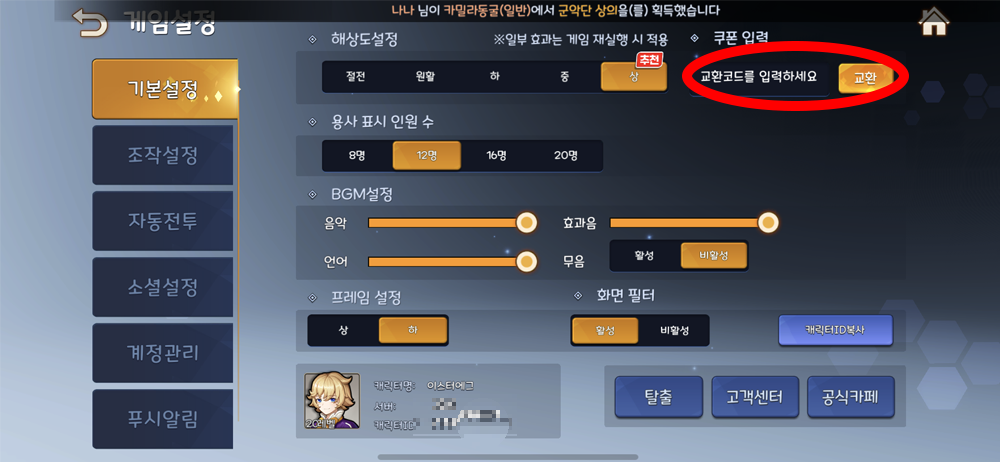 3.화면이 뜹니다. 우측 상단에 보면 교환코드 입력하는 곳이 있습니다.